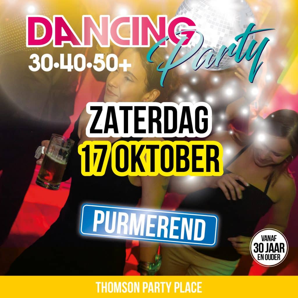 30+ Dancing Party vindt plaats in Thomson Party Place in hartje Purmerend aan de Koemarkt midden in het centrum. Al jarenlang een zeer bekend partycentrum in de regio (voorheen De Doele), gerund door Tom Groot & family en waar al heel wat feesten zijn geweest.